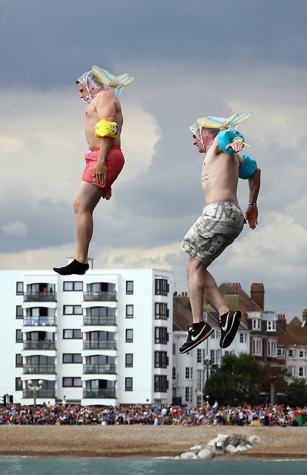 英国上演"鸟人"飞行大赛 选手奇装异服吸睛(高清组图)