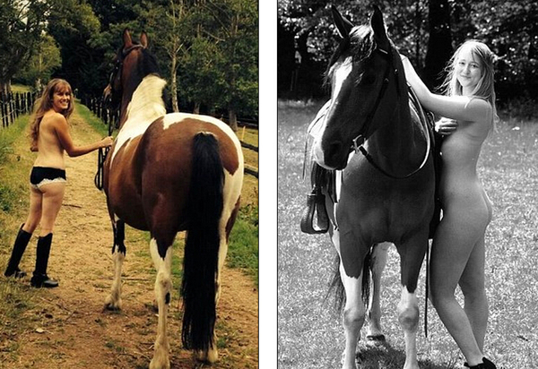 英国网上掀起晒裸体骑马照活动 呼吁司机保护动物(组图)
