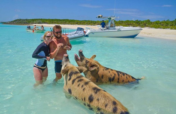 巴拿马“会游泳的猪”也出席了他们的婚礼。 (网页截图)