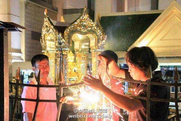 泰国工人连夜修补爆炸中受损四面佛(组图)