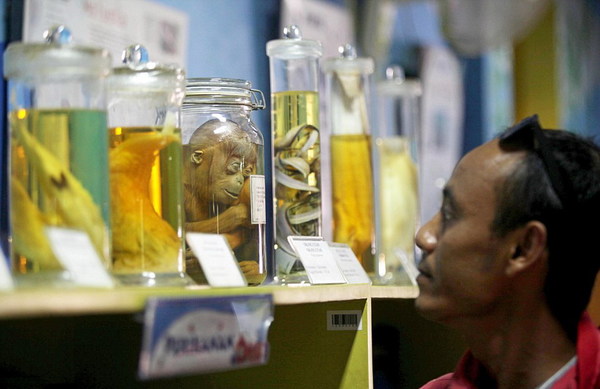 印尼办罐装动物标本展览 小猩猩“微笑”如生(高清组图)