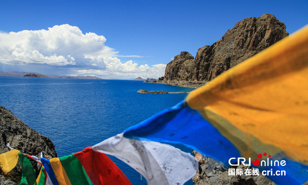 天湖纳木措湖畔悬挂着的经幡 摄影 廖继勇