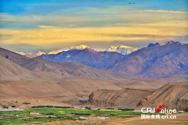 在雪山的环绕下,不远处的土地犹如戈壁般贫瘠,而近处的村庄里,青稞翠绿,油菜花开,各种色彩的搭配,宛如仙境般美丽,这就是西藏,总会给你意向不到的惊喜,图为犹如世外桃源般的阿里地区普兰县多油村 摄影 廖继勇