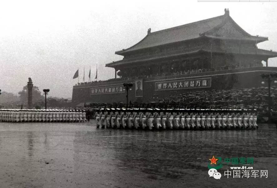 1956年大阅兵海军方队冒雨通过天安门广场。陆文俊摄