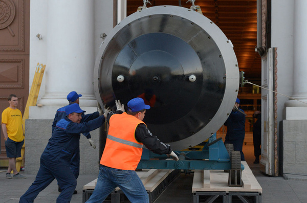 国际在线专稿:据俄罗斯NTV电视台8月23日报道,俄罗斯将于9月在莫斯科举行的俄核工业70周年纪念展览上展出前苏联研制的AN-602氢弹的外壳复制模型。该模型已于22日晚从俄核武基地萨洛夫运达莫斯科。
