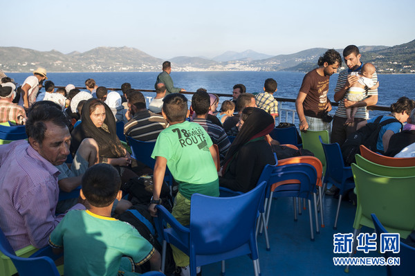 8月21日晚,坐在希腊渡轮上的非法移民。当晚,上千名移民从雅典东南约300公里处的萨摩斯岛乘坐渡轮前往雅典。这些移民大多来自叙利亚、阿富汗、利比亚、伊拉克等战乱地区,经土耳其非法进入希腊边境岛屿,获取相关法律文件之后,前往雅典,之后转往德国、荷兰、比利时、瑞士、奥地利等欧洲富裕国家。希腊警方称,今年头7个月,大约15.6万名非法移民抵达希腊,是去年同期的6倍,其中叙利亚移民为8.9万,阿富汗移民为3.2万。新华社记者刘咏秋摄