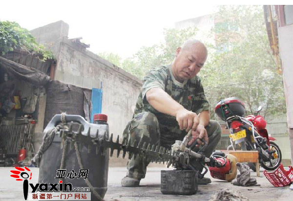 7月25日一大早,在石河子市东明新村5号楼前的空地上,刘军将从日本进口的两台绿篱修剪机拆开,开始慢慢琢磨起来,“以前都是送到外地去修,花钱不说,主要是特别耗费时间。”这些机器一般只能连续用360个小时,可他自己维修,修好接着用,坏了再修,这台机器至今已经用了4年。