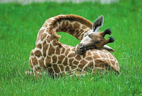 但最近英国媒体公布了一组长颈鹿躺下睡觉的奇怪睡姿照片。有专家指出这些应该都是被圈养的长颈鹿。因为已没有了被狩猎的压力,这些被圈养的长颈鹿睡觉时间也会相对较长,每天能间隔性地睡够四五个小时。