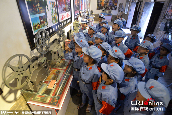 2015年08月25日,河北省邯郸市邯郸县南吕固乡中心小学组织小学生到该县四留固村参观“百年电影博物馆”,迎接“中国人民抗日战争暨世界反法西斯战争胜利70周年”。 同学们正在观看抗战纪录片。图片来源:郝群英/CFP