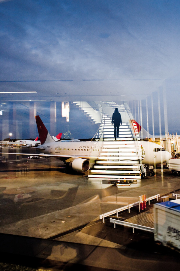 女子走上台阶的背影印在窗户上,她将走向何方?(网页截图)