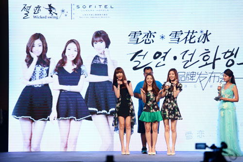 8月12日,在佘山索菲特酒店隆重举行了一场由韩国雪冰界甜品领跑品牌-雪恋“爱上一场雪恋上一碗冰”为主题的新品发布会。发布会上,韩国超人气女子组合Swing Girls千里迢迢从韩国来到上海,为现场嘉宾揭晓了“雪恋”系列新品。雪恋雪花冰是正宗的韩国工艺打造健康美食,在工艺上,雪恋品牌的雪花冰机拥有韩国独家专利技术,做出的牛奶冰雪花般细腻,口感丝滑,入口即化。同时配有各种时令水果以及谷物豆粉等纯天然健康食品,“雪花冰”甜点结合美容养颜,健康养生,提神补脑诸多元素的融合,让口感更加丰富,味道更加独特。选用顶级