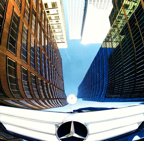 古铁雷斯利用多伦多一辆奔驰车顶的反射抓拍了宏伟建筑和城市街道的映像。(网页截图)