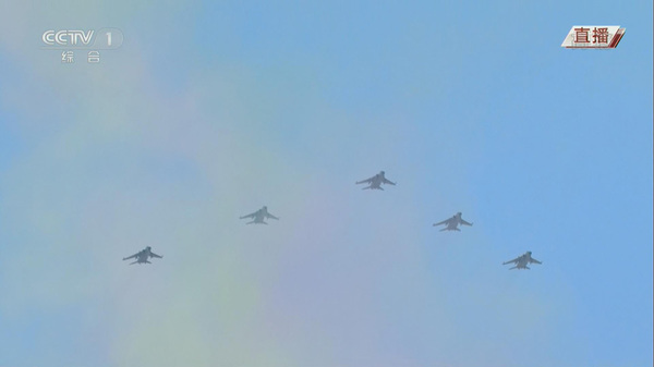 国际在线直播报道:上午11点25分起,随着8架战鹰拉出8道彩烟,我国阅兵史上规模最为庞大的空中梯队临空接受检阅。胜利日阅兵空中梯队共有18型近200架飞机参阅,规模和机型数量创历史之最。空中梯队历次受阅编队队形包括楔形、三角形、菱形、九机编队、大小飞机编队等,这次阅兵在传统基础上又有新变化,如首次采取纪念字样的编队飞行、直升机梯队首次采用大机群密集编队飞行、歼击机梯队首次以全新队形参阅等。
