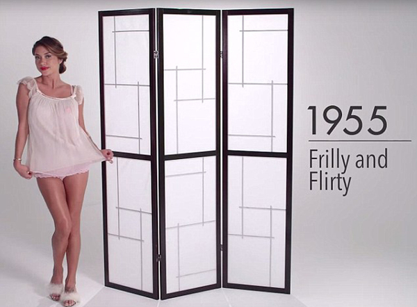 外国名模展示女性内衣百年潮流史。(网页截图)