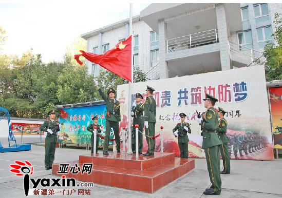 亚心网讯 (记者贺红艳通讯员潘兴强石晓坤)为纪念中国人民抗日战争暨世界反法西斯战争胜利70周年,8月31日,武警新疆总队阿勒泰边防支队举行以“明史知责,共筑边防梦”为主题的升国旗仪式和签名活动。来自武警新疆总队阿勒泰边防支队机关及直属单位全体官兵参加了升旗仪式并在主题展板上郑重签名。