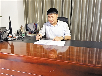 廖勇正在办公。
