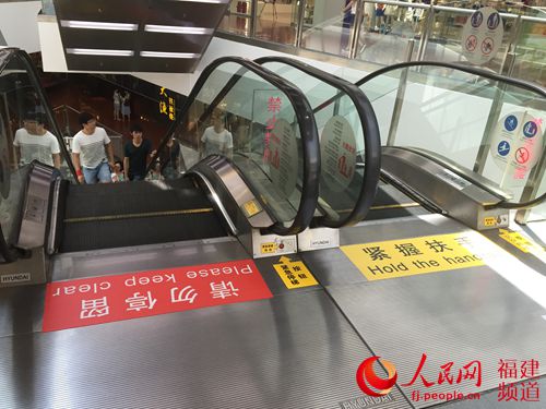 厦门一商场电梯“敏感”踏板贴“请勿停留”“紧握扶手”