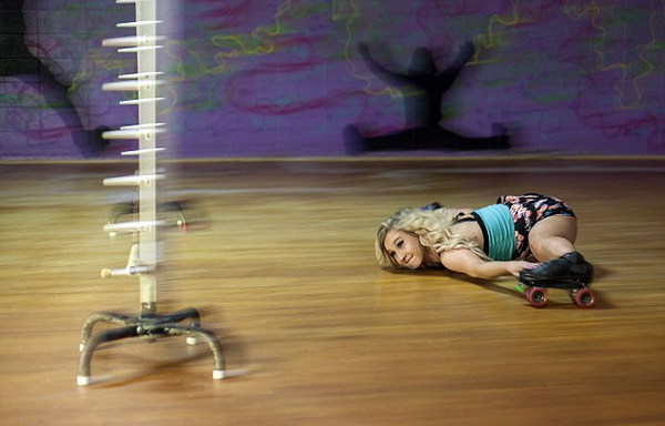美国“林波舞女王”秀绝技 滑旱冰劈叉伏地过横杆(组图)