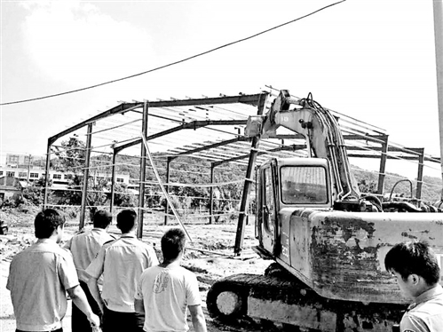海都讯 昨日,长乐市航城街道组织人员与派出所、国土所、供电所等单位人员近50人,出动钩机一台,拆除一处占地约400平方米的违建(如图)。