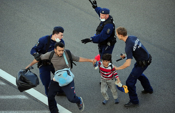 匈牙利警察高挥警棍驱逐非法移民(高清组图)
