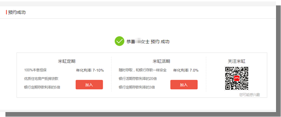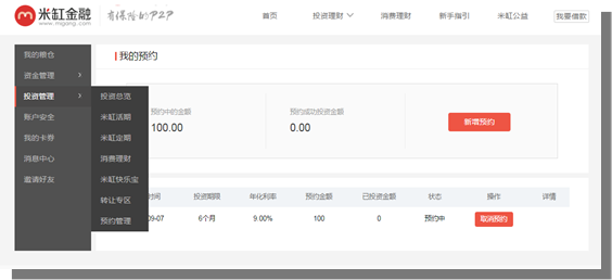 此前,米缸金融所推出的产品在收益率和投资期限上有着较多的选择,但投资的方式均为投资人直接投资。预约购买的具体投资方法将在本文中展现。