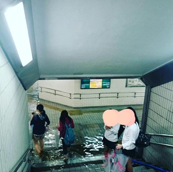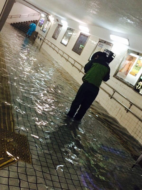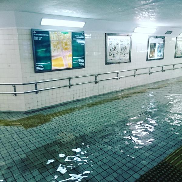 日本地下通道遭台风积水倒灌 似清澈游泳池(组图)