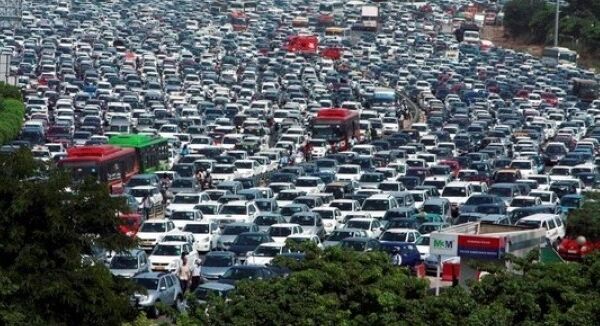 所有行车线全挤满车,场面壮观。