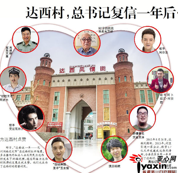 亚心网讯(记者 郭玲):“像吸铁石一样把乡亲们紧紧凝聚在一起”、“像沙漠里的胡杨一样根连着根、心连着心”2015年9月9日,在“纪念习总书记复信一周年·首届达西丰收节”活动现场,新疆尉犁县达西村党支部书记、村委会主任沙吾尔·芒力克带领大家重温了习近平总书记复信内容,赢得了在场所有村民及观众的热烈掌声。