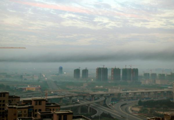 2015年9月8日,郑州市上空现黑色污染带。 CFP 图