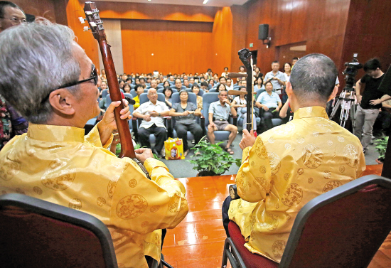 “一九三八,日寇侵我广州,施凶悍,残暴太无状!掠劫奸杀,实太狓猖!”著名失明粤曲演唱家莫若文及其徒弟郑健明现场弹唱以抗战期间的亲身经历而创作的粤曲作品,令全场观众为之动容。近日,“抗日烽烟中的南国曲韵——广东戏剧戏曲界的民族精神”讲座在广东省博物馆举行,吸引了众多粤剧粤曲粉丝前来捧场。