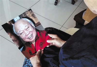 贺书元手捧父亲贺普仁的照片,回忆父亲一生行针治病的故事。