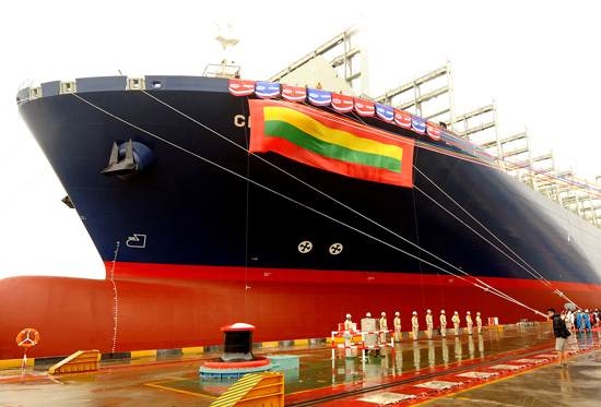 我国最大集装箱船“郑和”号命名交付