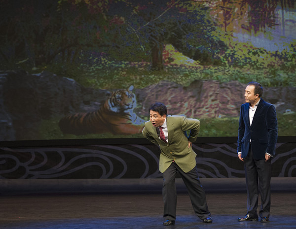 “爱国”与“敬业”、“传承”与“创新”成为整场演出的鲜明特色。65岁的姜昆带着对祖国最真挚的爱、对相声艺术最深厚的情,用新颖的“相声秀”表现形式,把观众们逗得开怀大笑,掌声不断。