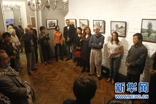 中国银川美术作品展11日晚在布加勒斯特艺术家画廊开幕。新华社发(佩特雷斯库摄)