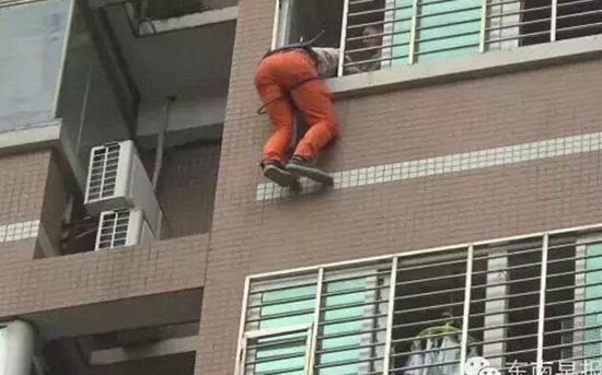 福建女子偷情男友突然回家 情夫7楼阳台外挂一夜(图)