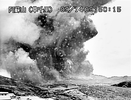 阿苏山海拔1506米的中岳火山1号火山口发生喷发,日本气象厅把警戒级别提升至3级,要求人们不得接近这座火山,因为火山喷出的岩石和烟雾对人们构成危险。当地气象局说,这是日本5级火山警戒级别2007年实施以来的首次。