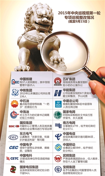 昨日,南方电网有限责任公司等8家央企通报了巡视整改情况。截至目前,2015年中央巡视组第一轮专项巡视已公布18家单位整改情况。