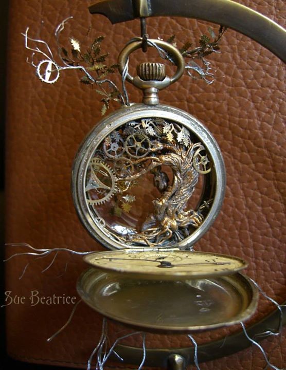 国际在线专稿:对于美国新泽西艺术家苏·碧翠丝(Sue Beatrice)来说,坏掉的怀表并不是废物,而是创作的材料和灵感的源泉。她利用废弃怀表的组件,如弹簧、螺丝和细小零件等制作出了一系列蒸汽朋克类的小雕塑。