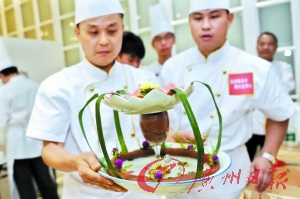 9月16日,市总工会、荔湾区总工会等举行“茗香飘荔湾,靓点在西关”荔湾餐饮行业点心制作大赛,来自荔湾区内不同酒家选拔出的10位点心制作高手在此对决。