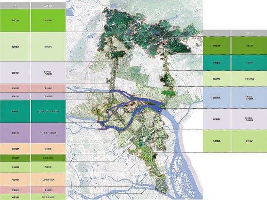 为了保护被逐渐侵蚀的生态廊道,2000年 ,广州规划确定了都会区“三纵四横”生态廊道结构,随后又明确了“区域生态廊道—组团隔离带—城市绿道”3级城市生态廊道体系。具体来看,“三纵”是指流溪河——芳村花卉保护区——大夫山生态廊道,火龙凤——南沙港快速路生态廊道和帽峰山——东二环——海鸥岛——狮子洋生态廊道,“四横”是指北二环——新塘生态廊道,珠江前、后航道生态廊道,金山大道——莲花山生态廊道和沙湾水道生态廊道。