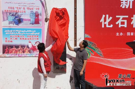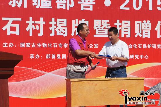 亚心网讯(文/图 记者 刘芳) 9月16日,新疆鄯善七克台镇南湖村化石保护站揭牌,来自国土资源部地环司、国家古生物化石保护专家委员会办公室及全国12个省市的古生物化石保护专家、学者、近百余人在七克台镇南湖村共同见证了化石村保护站的揭牌。