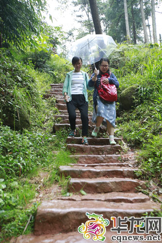 据工作人员介绍,20世纪50年代,20岁左右的重庆江津中山古镇高滩村村民刘国江爱上了大他10岁的“俏寡妇”徐朝清。为了躲避世人的流言,他们携手私奔至海拔1500米的深山老林,自力更生,靠野菜和双手养大7个孩子。为让徐朝清出行安全,刘国江一辈子都忙着在悬崖峭壁上凿石梯通向外界,几十年如一日,凿出了石梯6000多级,被称为“爱情天梯”。