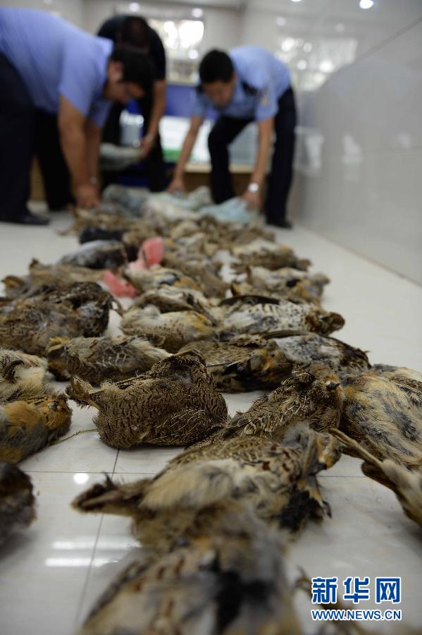 黑龙江省森林公安局9月18日通报称,齐齐哈尔市森林公安局历时一年多成功破获一起特大非法收购、运输、出售珍稀濒危野生动物制品案件,收缴熊掌100余公斤,鹿茸、野鸡、狍子等其他野生动物及制品250余公斤。新华社记者王凯摄