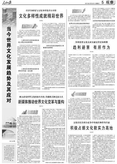 人民日报整版文章探讨“当今世界文化发展趋势及其应对”