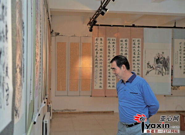 马先生今年47岁,喜欢参观各种书画展览,“今年是自治区成立60年,各种展览会特别多,我们这些老百姓可算是一饱眼福了。今天赶巧听说有这个书画展,就来欣赏一下,感觉很享受。”