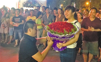 周末的晶彩城商业广场成为求爱的天堂。