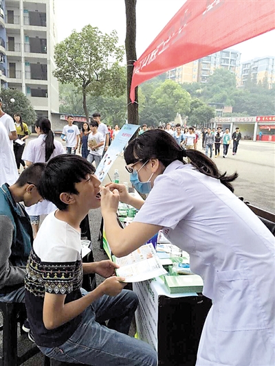 口腔科医生正在为学生检查口腔。通讯员 胡学银 摄