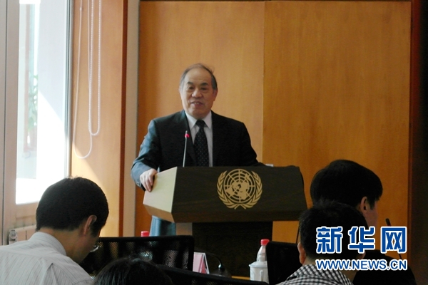 9月21日,联合国环境规划署驻华代表张世钢点评《2015年世界可持续发展年度报告》。新华网记者 雷曼誉 摄