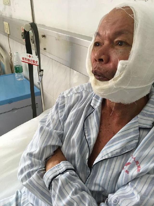据了解,制服醉汉时,有两名居民受伤,其中一名即为66岁老人的陈先生,目前其正在宝安区人民医院留院观察,南都记者在医院看到,他两侧脸颊被纱布包裹,眼球下发及嘴角左侧处有类似淤青状伤痕。陈先生的儿子介绍,当时父亲受伤后血流不止,“血一直流,当天从1点流到5点,腰部的血都能凝结成块了。”