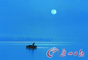 西湖边上赏月,在湖水的映衬下,月亮显得更圆。